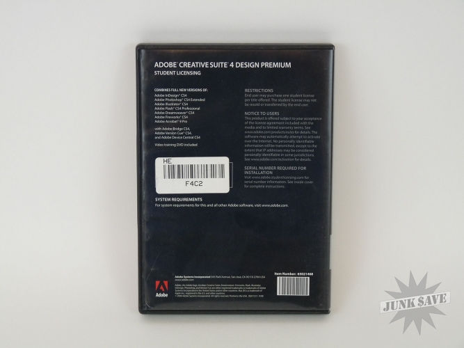 Adobe Creative Suite 4, Design Premium, full versions of the Adobe applications not a trial! In original box with 4 discs and required serial number (not shown in photos for obvious reasons). This is for Mac OS X and is a student/academic license, which works the same it just means we may need to ask for proof of your student/academic status. Full versions of included applications: