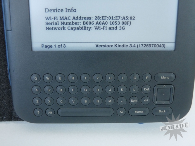 Nice Kindle 3rd Generation with WIFI and 3G, 600 x 800 E-ink paper display, 4GB storage, comes with original Amazon Kindle case (blue). Both are in great condition, the Kindle appears to have been little used and is working perfectly. Uses the standard smartphone power/USB cable, cable not included.