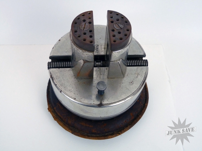Amazing engraving block from the late 1880s - all original with leather seat and toolbox! This is an early pre-patent model of "The Rex" by inventor L. W. Gery and manufactured by Adolph Muehlmatt out of Cincinnati Ohio. Found a Machinery magazine article from 1909 and from the photos have determined this is the larger "regular" model (there was also a smaller "keyless" model) and indeed the leather seat and toolbox are the originals that came with it. The tool is in great condition for its age, didn't try to clean it at all, will leave those important choices up to you. Using the chuck the tool opens and closes smoothly, the top rotates smoothly, I can't find any functional flaws with it. The leather seat is somewhat fragile, soiled in spots from age and use, and with surfaces starting to crack and deteriorate, but surprisingly solid condition for its age and considering for over 100 years it has been holding a 25 pound ball of steel. The tool accessories box is also in solid condition, the latch and hinges are OK, and appears to have most if not all the bits inside for holding watch parts or jewelry onto the block. These were the first engraving blocks ever to be produced, are quite rare, and unheard of to be found with all the accessories.