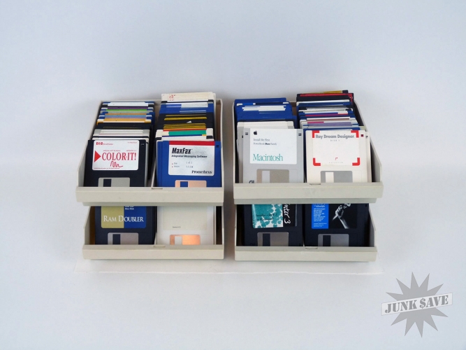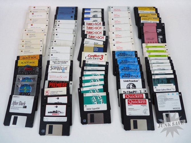 HUGE lot of quality vintage software floppy disks for Apple Macintosh computers. All came from the same Bay Area California estate and are releases from the early to mid 1990s. Please see photos and ask questions if necessary. There are a few disks included which are not shown in the photo spreads, in total we have a little over 350 disks. All software included are originals, these are not backup copies. Disks have not been tested but all are clean and organized, my guess would be that 95% of them work fine. For instance if an installation requires 4 floppies, then you could expect to find all 4 that are required. The 4 tray holders shown in the photo are not included, as they are large and don't have their lids so they don't seem very useful. However if you really want them I am happy to ship them to you with the disks. Please feel free to ask specific questions.