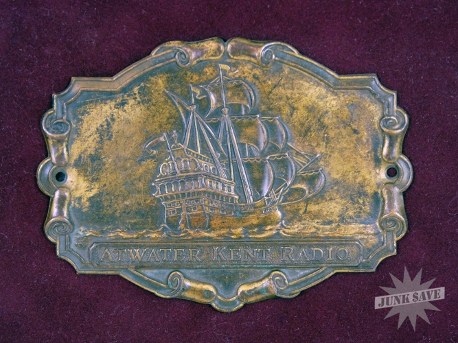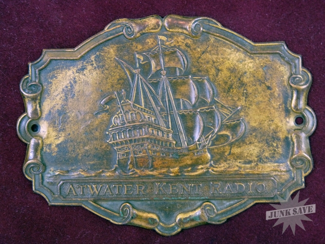 Atwater Kent Radio Plaque Name Plate Brass Sailing Ship