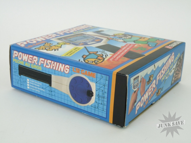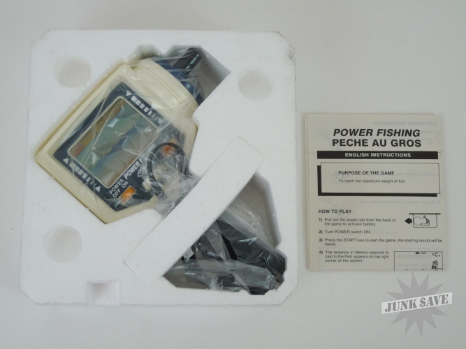 New old store stock condition of Bandai Power Fishing - the first and original LCD motion controlled fishing reel game, way before all the millions of Radica copycats that came in the 1990s. Game box is pristine and complete even with battery pulltab (original batteries were thrown away), never played except for testing. Game screen and sound and buttons all work good the motion control was a bit tricky, but eventually did get the line to cast out a few times - you swing the game forward to cast it and probably due to sitting untouched for decades age the motion control sensor needs some coaxing, or maybe I just don't know how to cast! Very rare Bandai release, especially in this new minty complete condition. Please note this vintage game is being sold for collecting purposes, for parts & repair only, not as a functioning electronic device.