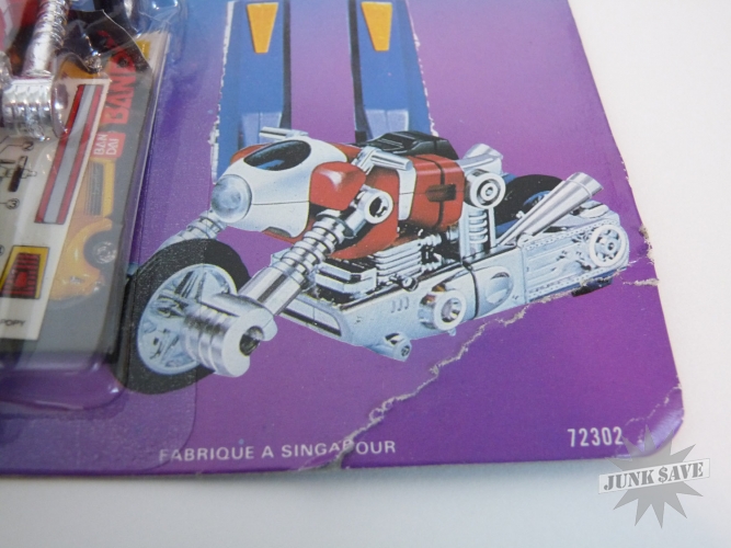 Vintage 1980s Bandai Robo Machine transforming gobot robot toy action figure. RM-01 Motobike (Cy-Kill). New and still sealed on blister card. Package slightly warped from storage, with some edge wear and has a crease at bottom right. This is a rare European version, new old dealer stock. Only 1 available.