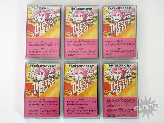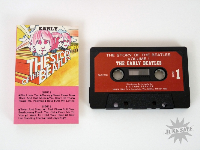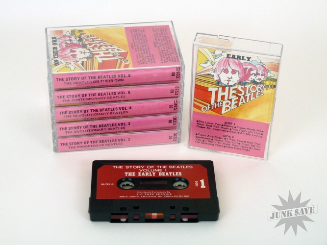 Very rare set of Beatles music on cassette tapes by E-C Tape Service. The Story of the Beatles in 6 volumes, doubtful E-C had the rights to release this music so it's very tough to find! These are very clean and minty, looks like they saw very little use and they sound good. However I do not believe the clear cases are the originals, as those would have been the black plastic type. This is a complete set of all 6 tapes.