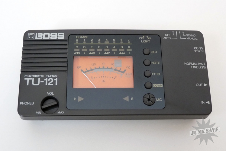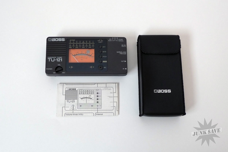 Vintage late 1980's Boss wide range chromatic tuner in like new condition. Comes with case and instructions. Tested and working.