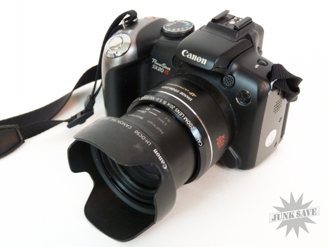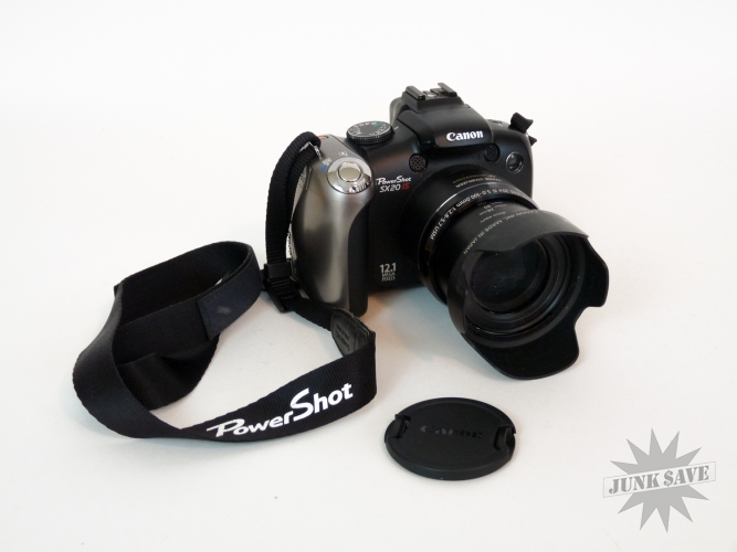 Canon Powershot digital camera model SX20 IS with 20x zoom and 12.1 mega pixels. A nice solid digital camera with a great zoom lens, weight and size feels good in the hands, not as fancy as a big digital SLR but alot cheaper! Comes exactly as shown in photos with lens cap, original strap and 8 GB memory card. Runs on AA batteries (not included), tested and working great - ready to use.