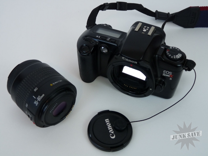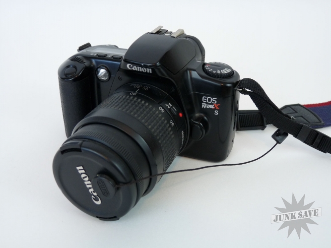 Classic Canon Rebel-X 35MM film (not digital) camera, paired with a Canon 35-80MM lens. Both are in great cosmetic and working condition. Original strap and lens cap included. Rubber grip on camera has some scratching wear to it. Batteries not included.