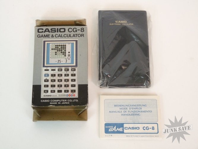Vintage Casio electronic game and calculator Oct-Reversi model CG-8. Minty condition in original box with original bag, instructions, and case, appears to have been only played once or twice and probably never removed from the case. Electronics untested, does not power on the batteries are dead, since the item is mint and has never been removed from the case we would rather not open it just for the sake of testing, probably works fine but this item being sold as-is. Box also in amazing condition, a rare Casio game!