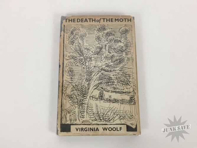 1st UK Hogarth Press edition (2nd printing) of "Death of the Moth" book of essays by Virginia Woolf, made in 1942 apparently for Canadian market. Hardcover has some soiling on the spine area, dust jacket is heavily soiled and torn, still mostly there and at least covered in mylar. Some calligraphic writing from Cambridge on the first free end page, otherwise clean inside. "A posthumous collection of her essays, written over a twenty year period, but issued ten years after her Second Common Reader. For the most part, the essays fall into two classes slight, charming, almost idyllic bits of atmosphere writing; and critical essays, chiefly on figures of a period past (Coleridge, Sara Coleridge, Shelley, Henry James, George Moore and others). There are a few - a very few - more personal bits - one on the subject of her horror of being thought middlebrow - high??, yes, but never the other. Only one even touches on the war. Interesting to read immediately after the Forster Virginia Woolf, and to trace and check with him through a fresh approach to unread material." (Kirkus Reviews)
