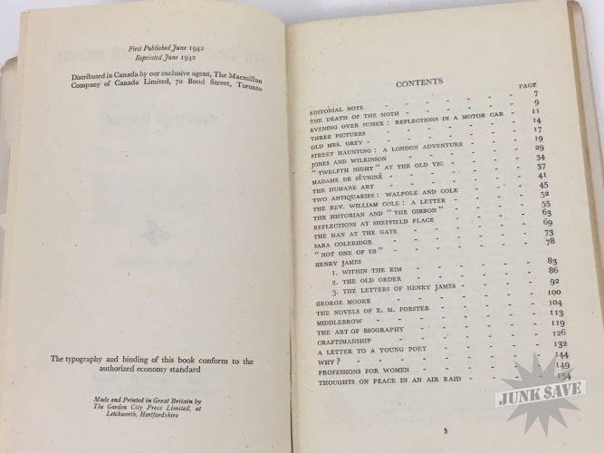 Death Of The Moth Virginia Woolf 1942 Hogarth 1st UK Edition
