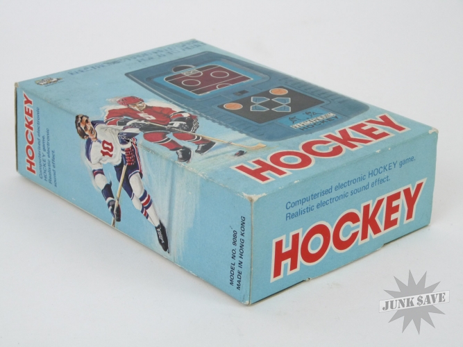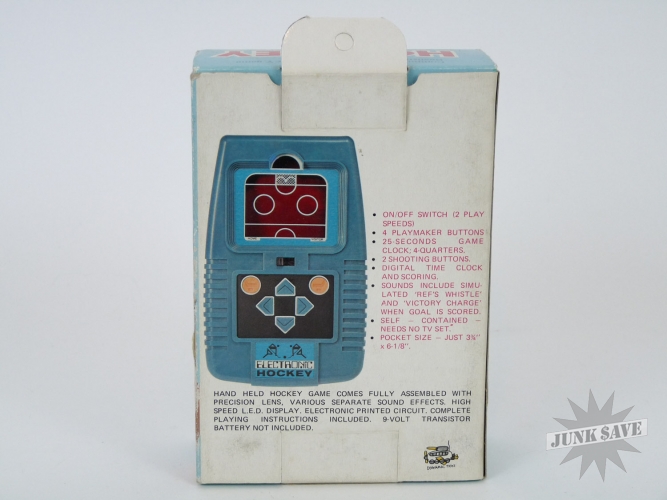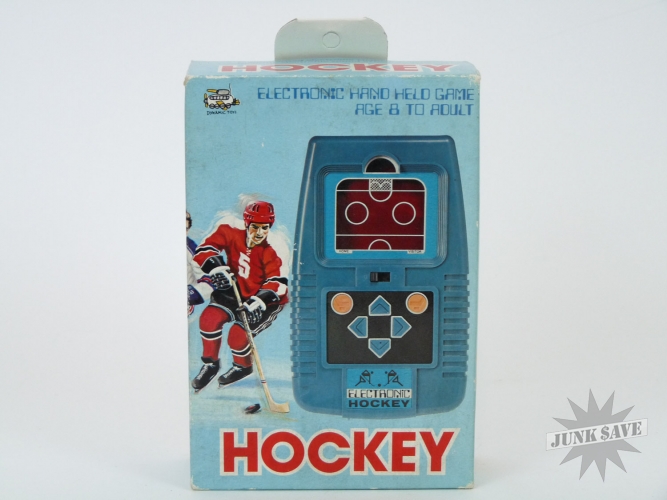 Extremely rare LED Electronic Hockey handheld game by Dynamic Toys from the 1980s. Mint in box with hole still UNPUNCHED. Box has a little storage wear, but otherwise this is new, clean and unplayed condition. Tested and working good. There were lots of LED sports game clone companies that copied the popular Mattel games, Dynamic Toys is very obscure and tough to find especially in this condition.