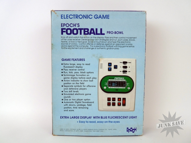 Rare LED football game by Epoch, in amazing like new condition! This game is much larger than the typical LED sports games, and this one by Epoch is quite scarce, not to mention a good football game.