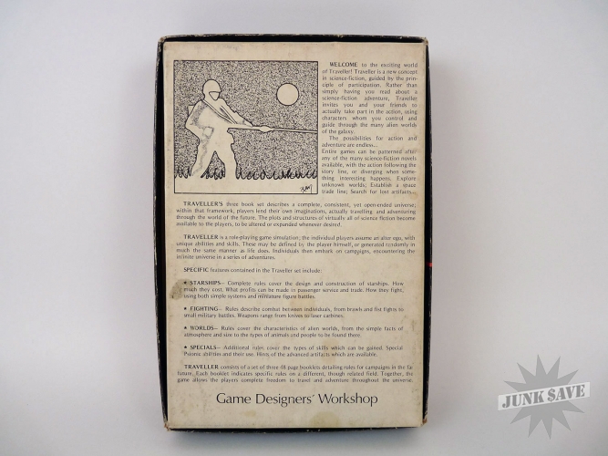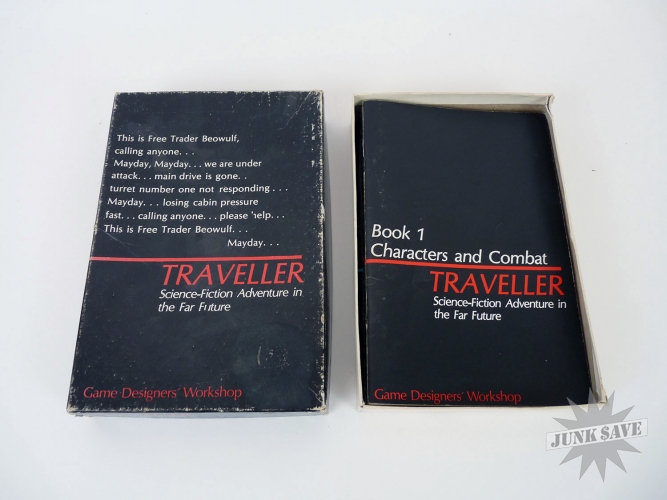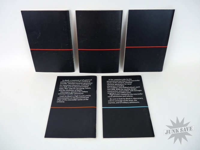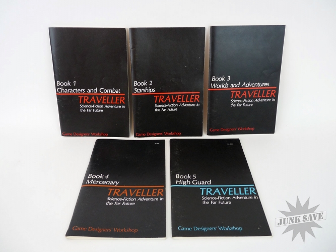 Vintage collectible role playing game, "The Traveller" by GDW Game Designers Workshop. Box contains 5 books, I believe the first 3 came with this set, and 4-5 were purchased separately. Box is somewhat dirty but in solid shape, books very clean.