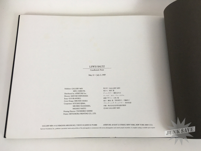 Candlestick Point, book of photographs by Lewis Baltz, published in Tokyo for an exhibition at Gallery Min, 1989. Very nice edition, hardcover with black boards in a matching slipcase. Near fine condition, some wear to book from friction movement inside slipcase, a few fingerprints near edges. Slipcase has an area with some fading/oxidation otherwise nice. Large format book, luxurious photography showing industrial pollution in and around the Candlestick area of San Francisco.