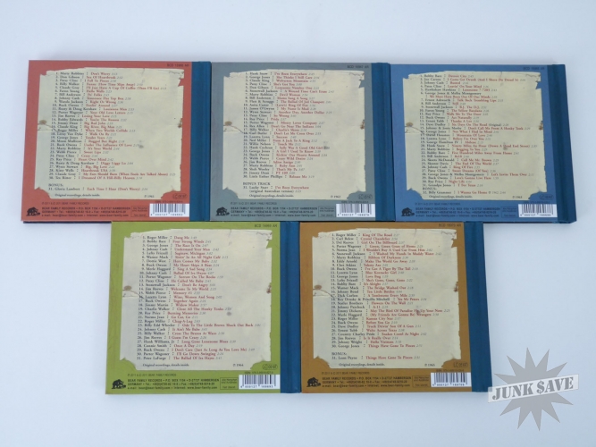 5 CD lot of Hillbilly Music! Beautiful packaging and amazing classic hits. Each comes with a 50-60 page booklet containing artist/song history and photos. The years included in this lot are 1961, 1962, 1963, 1964, 1965. CDs are in excellent minty condition, some appear to have never been played. (We play tested 1961 only but visually inspected the others). Released by Bear Family records.