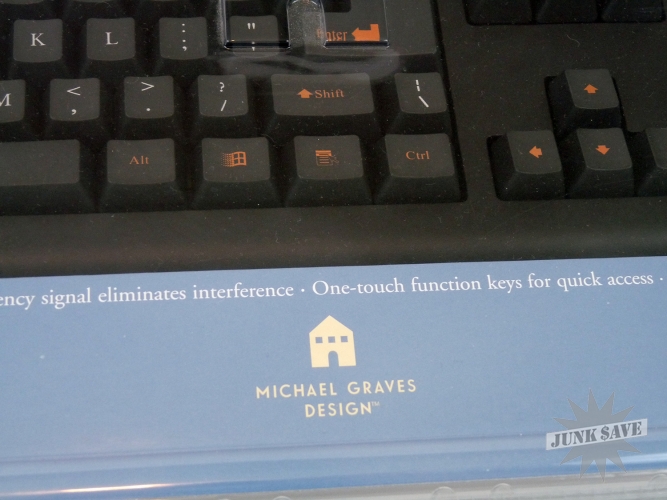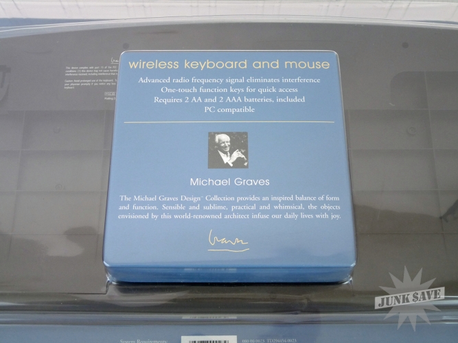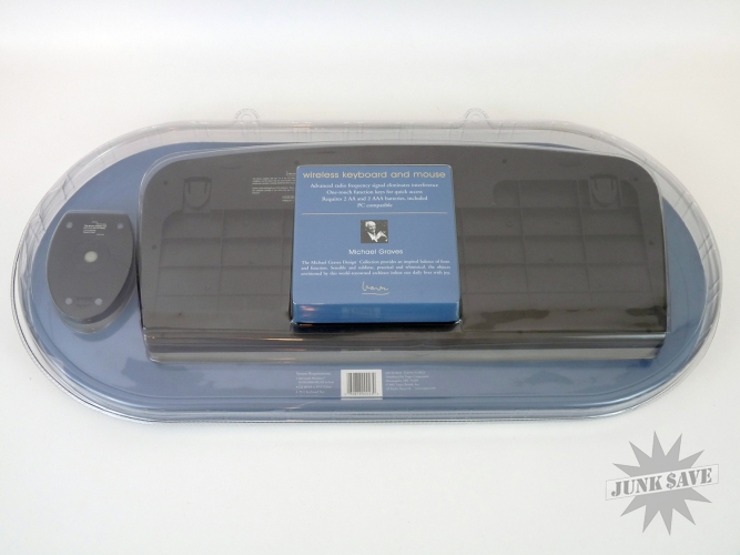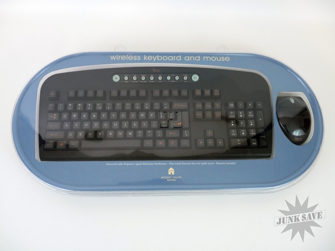 New in unopened box! This is the Michael Graves Wireless Keyboard and Mouse Combo which was sold at Target during the Michael Graves design craze (2002 to be precise). This is for vintage Microsoft Windows machines that have PS/2 ports, so please be aware this is a vintage collectible not something to be used with modern computers. Very rare to find this item new in the package, and the plastic package is even in amazing condition (no cracks or yellowing).