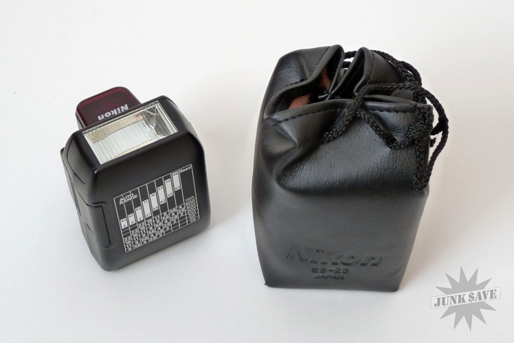 Nikon shoe mount flash module for Nikon digital and film cameras, model Speedlight SB-23. The item appears to have never been used! Comes with box and bag but please note the instruction booklet appears to be missing. Runs on 4 AA batteries (not included).