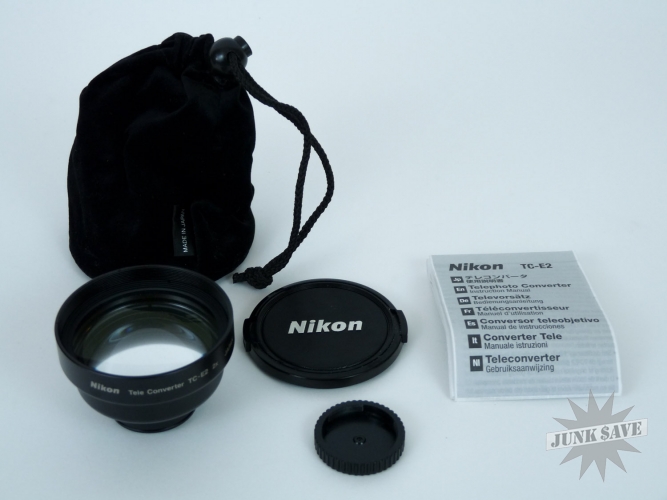Brand new unused Nikon 2x Tele-Converter lens model TC-E2. Comes with box, instructions, bag, and caps.