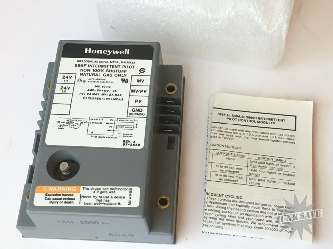 New Old Stock unused Honeywell S86F Intermittent Pilot Control Non-100% Shutoff Nat Gas Only 24V. Still has instructions booklet and foam inside, don't usually see these new in box!