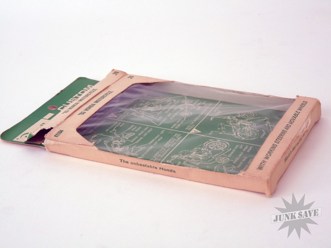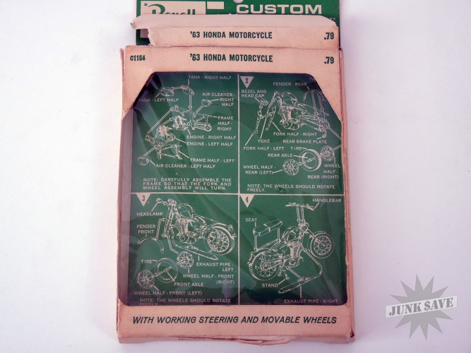 Vintage Revell model parts set for 1963 Honda Motorcycle. Never used still in package. Box has wear and some crush damage from being stacked, but really not too bad as it still has the plastic window and end flaps are there. A very scare vintage item to find unused. 1/25 scale. Model #C1164.