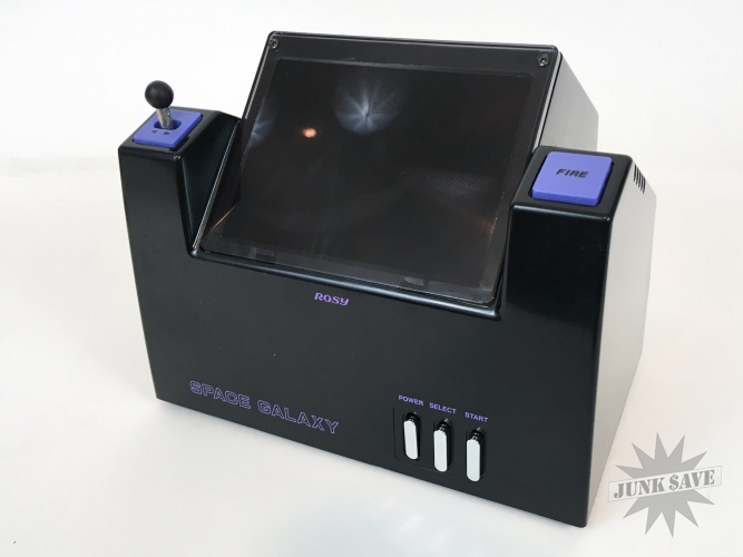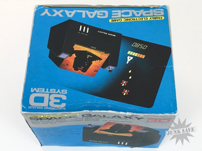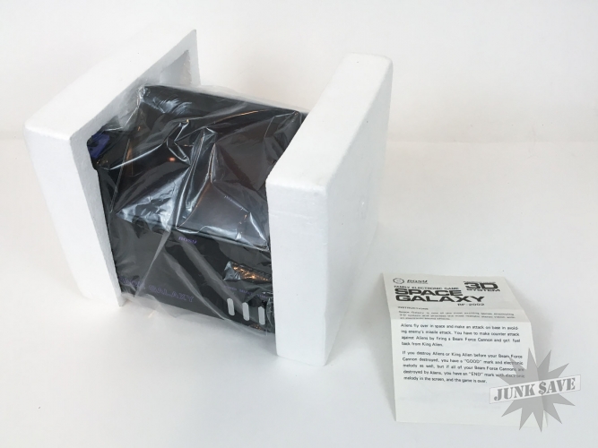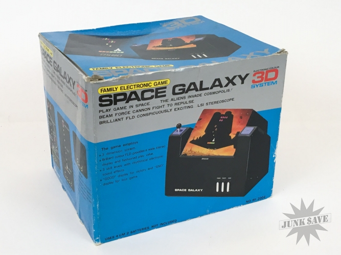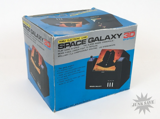 A beautiful tabletop video game - Space Galaxy 3D by Rosy from Japan. Game plays like Galaxian and was tested, works perfectly. Stunning condition found from old dealer stock, just some very minor wear to box edges and corners, otherwise new. A bright, crisp, minty, top-shelf prize. The design of this series of 3-D tabletops is just plain AWESOME, check photos and see for yourself!