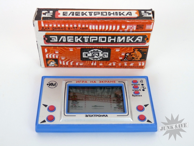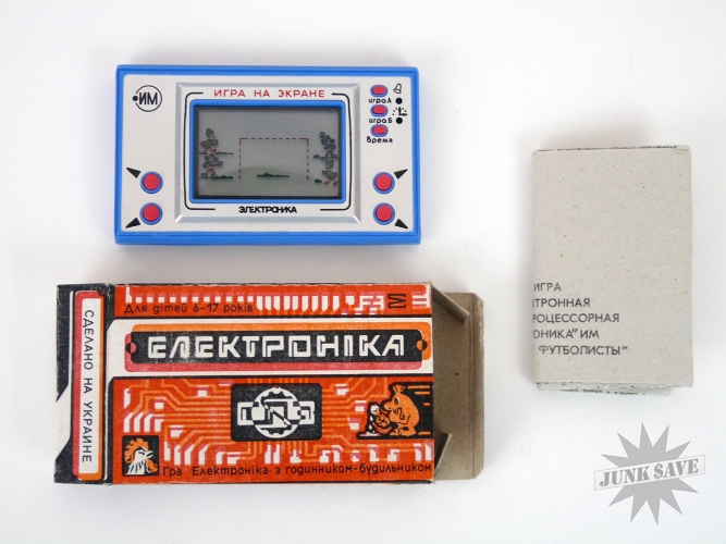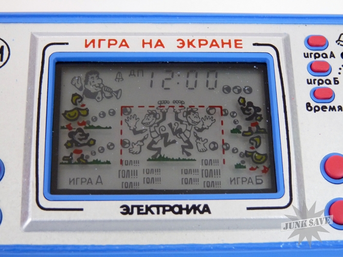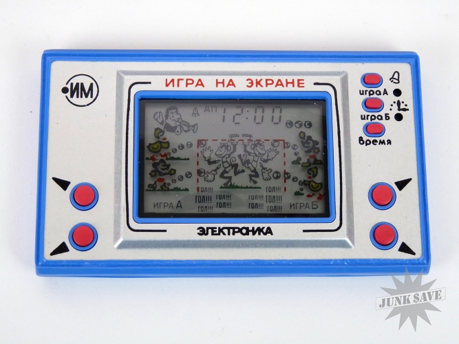 Vintage Russian Nintendo Game & Watch clone called Merry Footballer. Crazy setup here with a monkey as goalie, and some weird Mickey Mouse Donald Duck characters kicking the balls. Game is new in the original box with instruction manual.