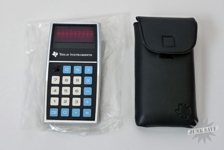 This vintage calculator from 1974 is like new, old store stock condition. Classic Texas Instruments Datamath series. Red LED display with metal siding. Tested and working.