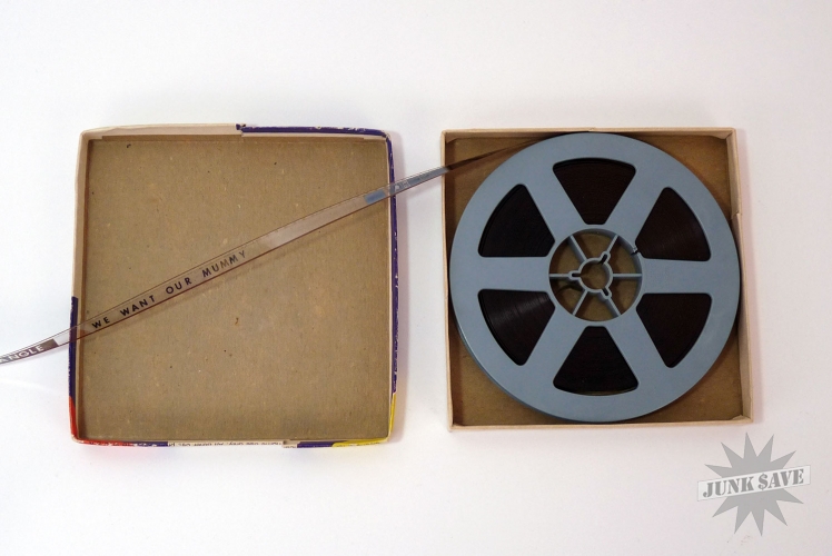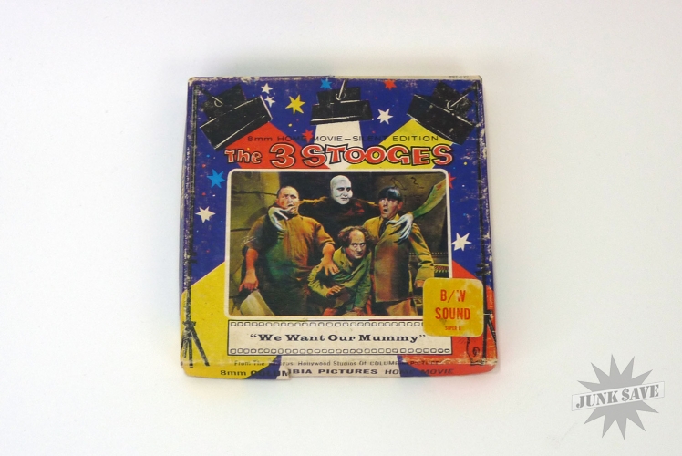 Vintage 8mm film reel of The Three Stooges "We Want Our Mummy". Black and white film, but box says "silent" in one place and "sound" in another so not sure about that. Untested but appears to be in excellent, hardly played condition.
