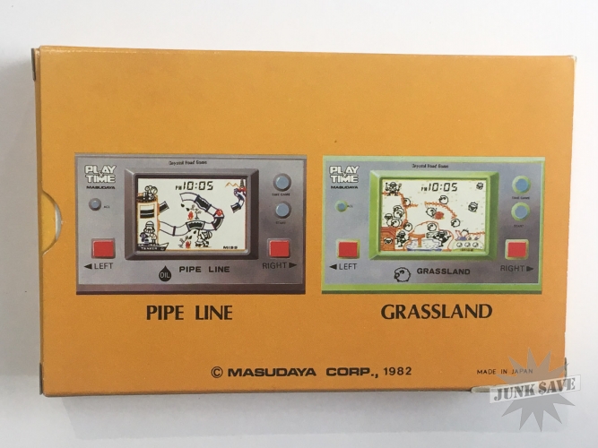 The previous owner of these games was a maker of carnival skill games and he called Thumb Power on the phone shortly after seeing the Christmas Electronic Games 1982 issue, and ordered all 8 Masudaya game titles available. The original packing slip included here shows the 8 games were ordered verbally and was shipped COD (cash on delivery) by UPS on 11-22-1982. Each of the 3 games included here Grassland, Pipeline, and Kitchen were originally $18, and make up a complete mini-series as shown on the reverse side of boxes. (the other 5 games available had slightly different features and came in blue/green colored boxes). The owner seems to have played these games only a couple times, perhaps searching for new ideas he could incorporate into his company's wooden carnival games. So all 3 games are in beautiful condition and complete in box with Thumb Power sticker on the side, plastic tray, instructions booklet, baggie and mint condition game. The games were tested and the screens are strong and everything still works great.