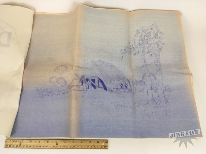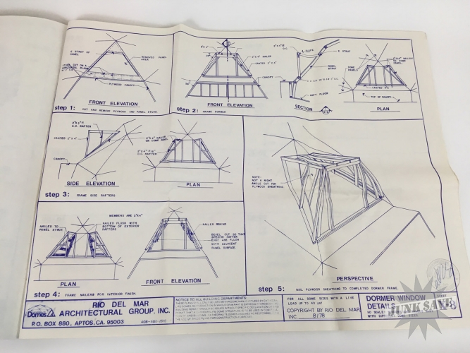 The rest of the included documents are hundreds of various pieces related to the hired builder, county city neighborhood, permits, lumber and supplies, checks, receipts, communications, notes, hand drawings... everything was carefully saved in one place! If you wanted to rebuild this 32 foot dome house or something similar, you would have a multitude of resources here at your disposal. Also could be useful for research of a vintage geodesic dome house case study. Because plans are easily copied this lot is being sold as-is, no returns, please ask questions if needed, thanks for looking.