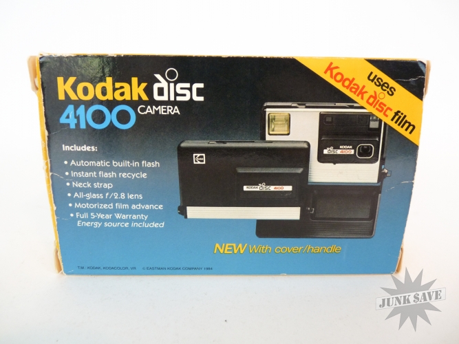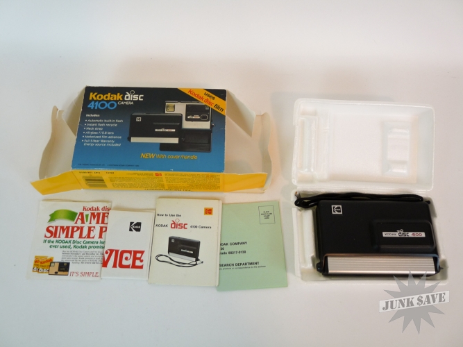 Vintage Kodak Disc camera model 3100 - with box, strap, holder, instructions and everything you see in photos. Looks like it was hardly used, however this camera is untested. A classic yet obscure 1980s camera.